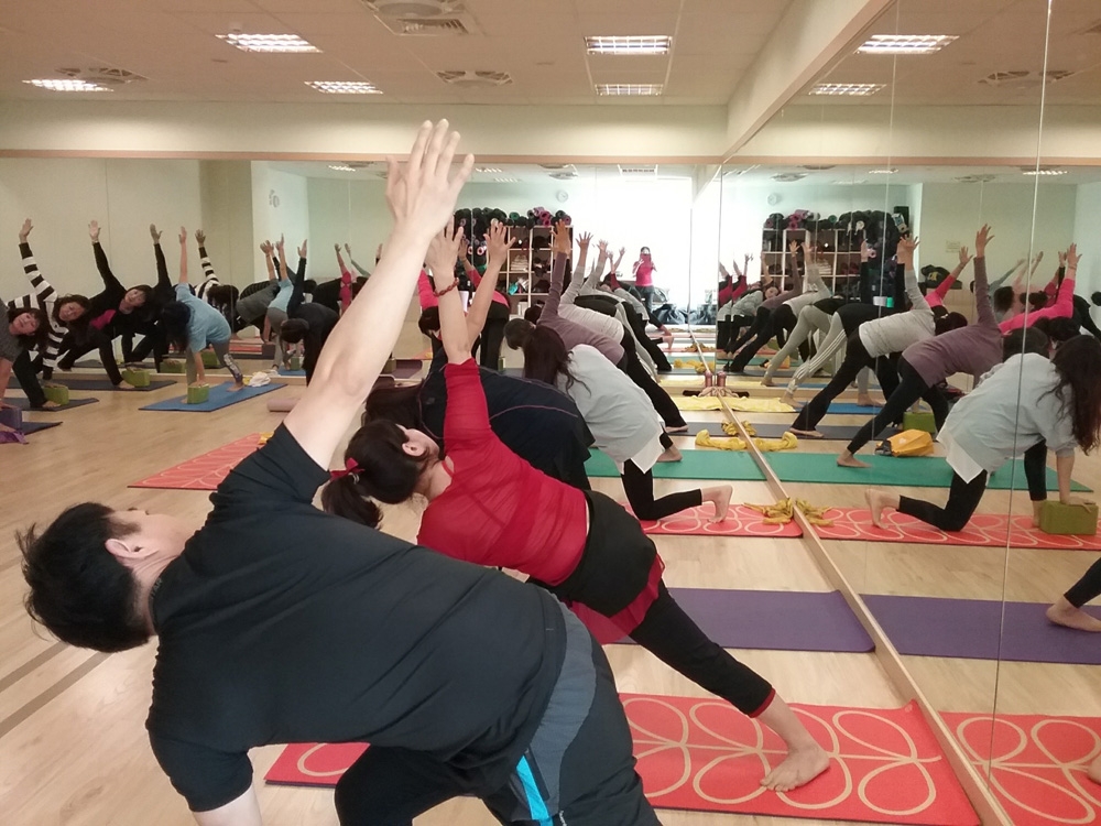 曾麗雪 老師 帶領著大家一起做 UkeyHealthYoga優氣養生瑜伽 ,學員們努力一起將姿勢與動作做到到位,達到養身健體的好處喔~~
